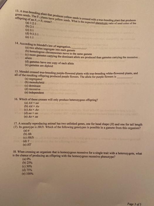 Solved 13 A True Breeding Plant That Produces Yellow Seeds Chegg Com