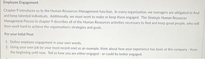 Solved Employee Engagement Chapter 9 Introduces Us To The Chegg Com