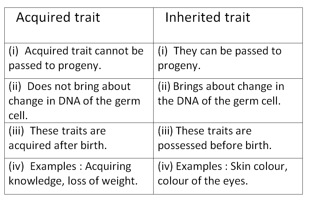 Mention Any Two Points Of Difference Between Acquired And Inherited Traits Cbse Class 10 Science Learn Cbse Forum